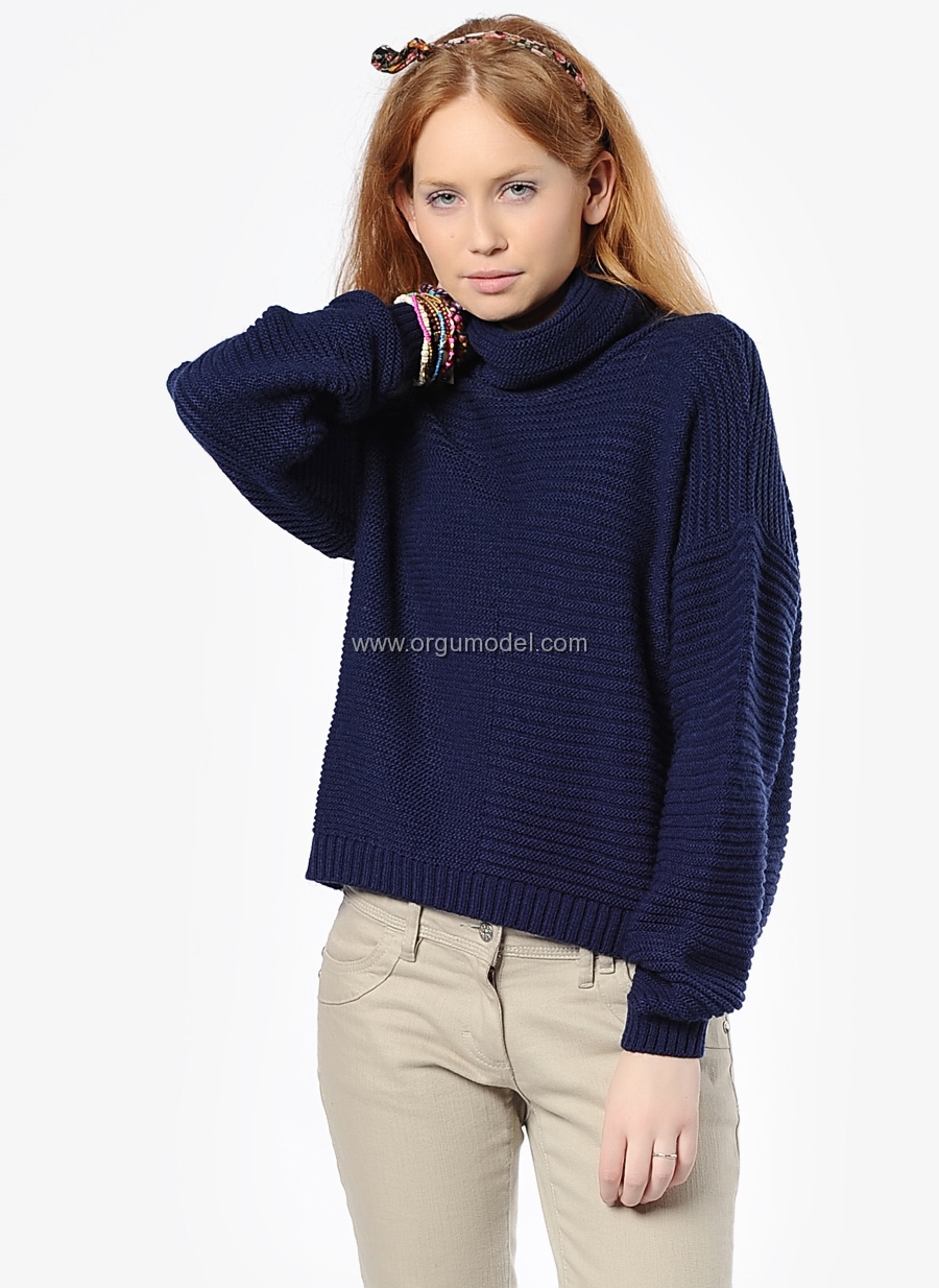 Ana sayfa Kazak Modelleri Bayan Boğazlı Kazak Modelleri lacivert boğazlı kazak