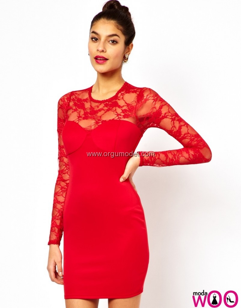 Kırmızı Dantelli Abiye Modelleri