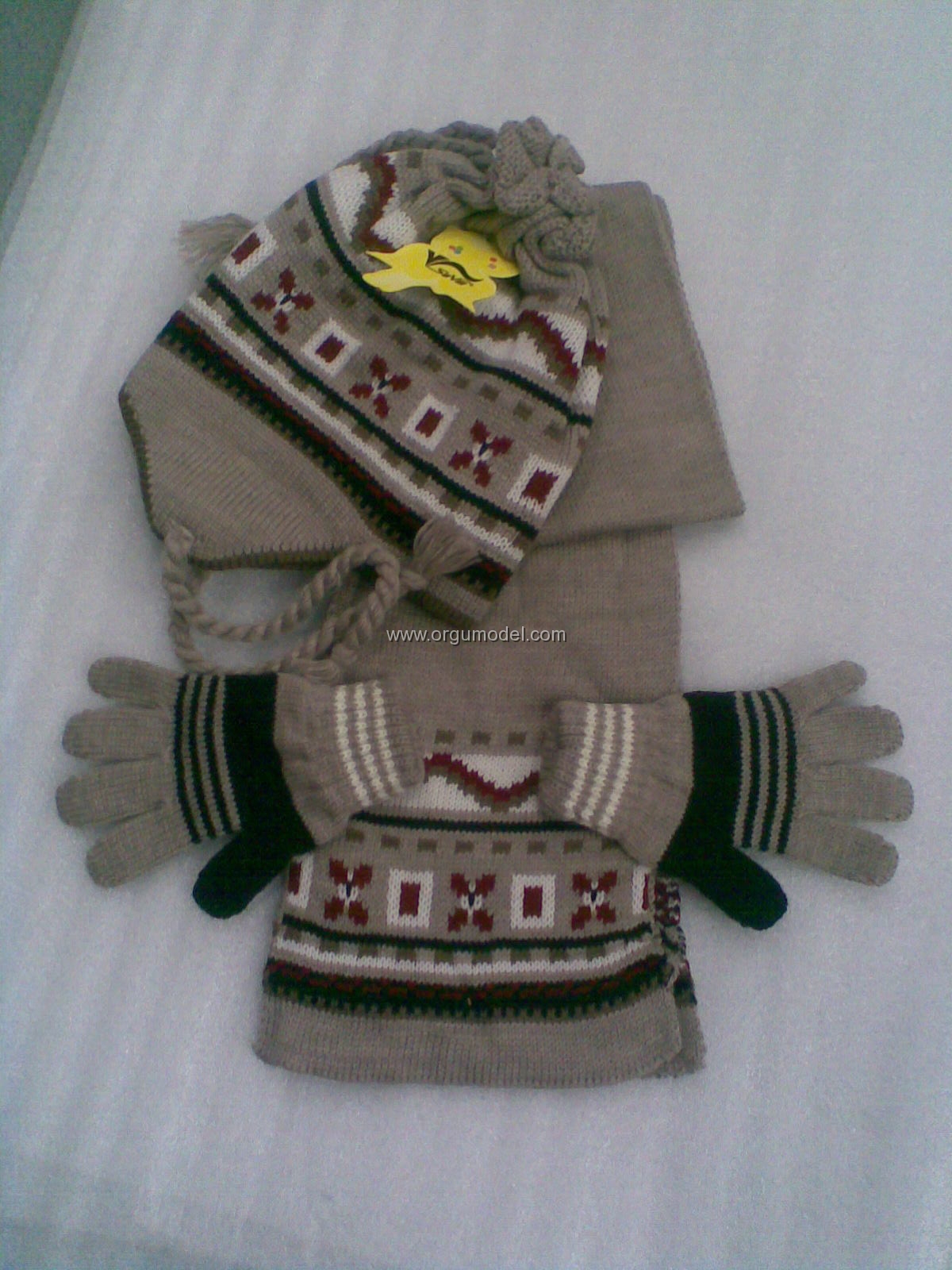 Ana sayfa Örgü Çocuklar İçin Atkı Bere Eldiven Takımı Modelleri kahverengi atkı bere eldiven